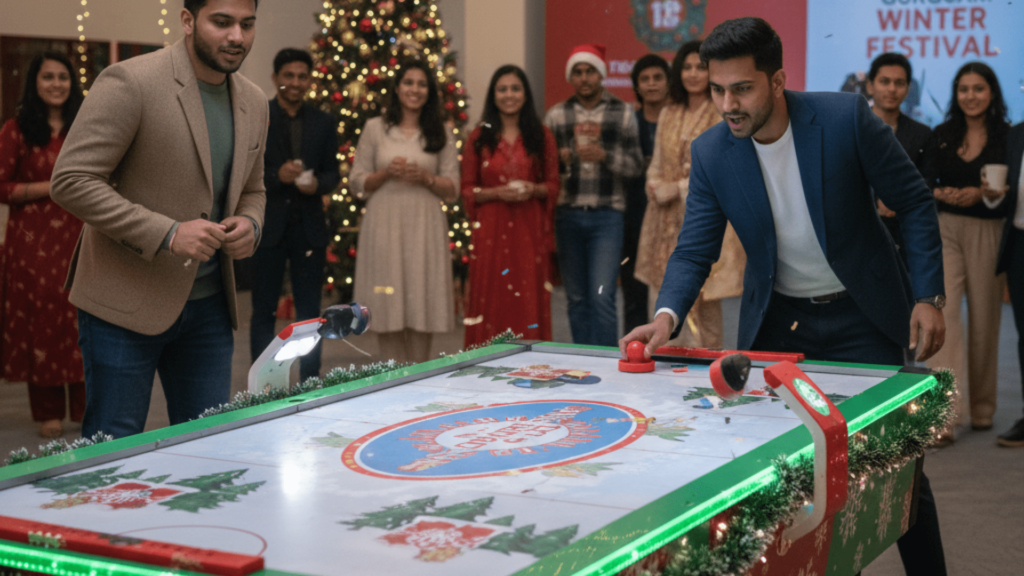 Gurugram’s festive events are known for being stylish, well-organized, and entertainment-driven. Air hockey tables match this vibe perfectly. Whether you’re planning a Christmas carnival in a residential society or a winter-themed corporate party in a luxury hotel, the game blends well with any décor style. The sleek tables add a premium look while delivering hours of non-stop fun.