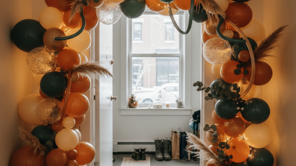 Apartment entrances are often narrow, so the décor needs to be stylish yet space-efficient. Balloon arches work beautifully in such settings because they add visual height and shape without overwhelming the doorway. They also introduce a burst of color and celebration the moment guests arrive, setting the tone for what awaits inside.