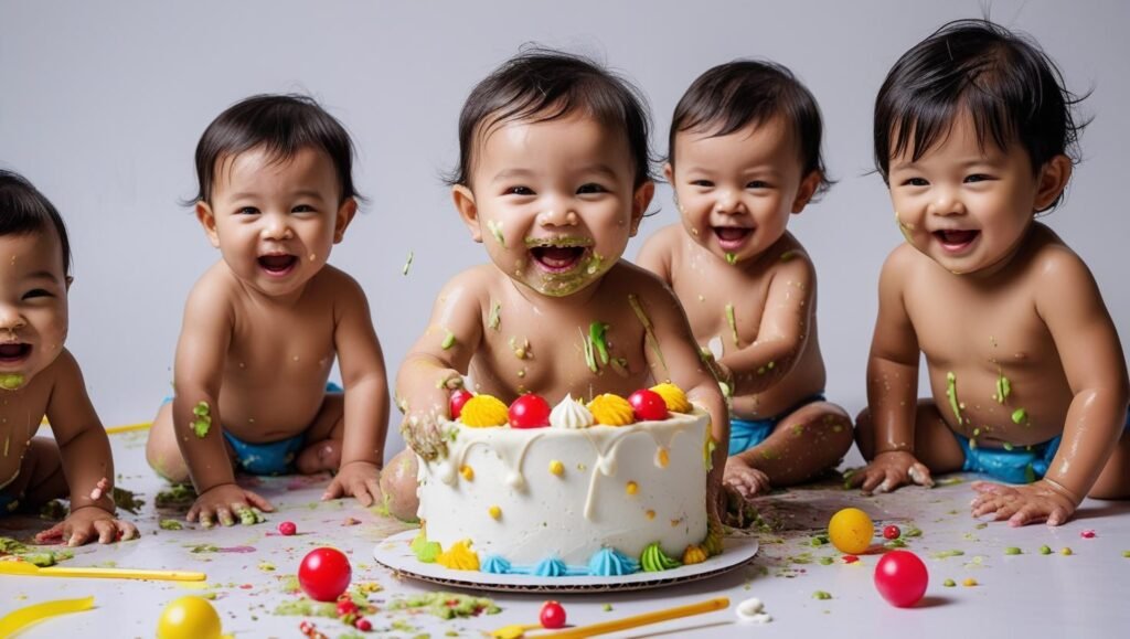 Many parents add a mini bubble bath photoshoot right after the cake smash — perfect for cleaning up while capturing even more adorable moments.