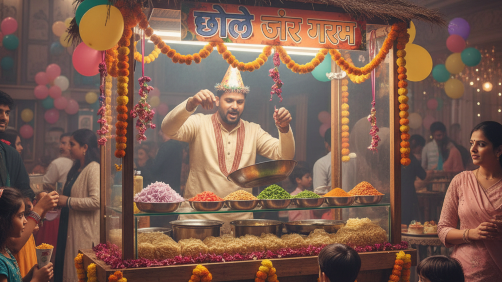 One of the biggest reasons hosts choose this live stall is the instant street-food atmosphere it creates. The aroma of freshly mixed chana, the sound of the vendor calling out, and the colorful presentation together recreate the charm of Delhi’s famous roadside snacks right inside your party venue.