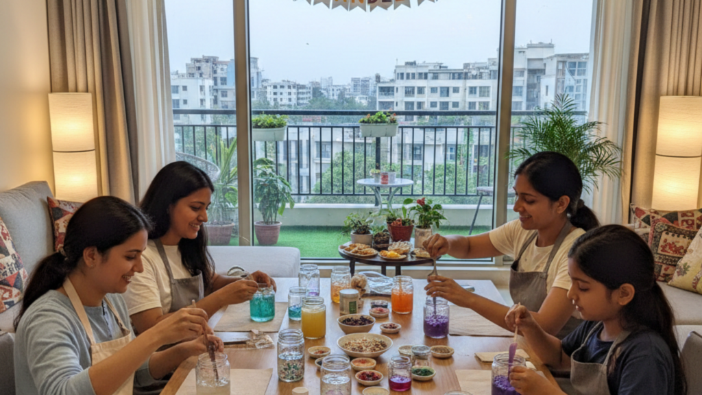 Another advantage is the calm energy this activity brings. Unlike high-noise games, candle workshops create a focused and relaxed environment. This makes them ideal for apartment celebrations in Noida where space and noise levels may be limited.