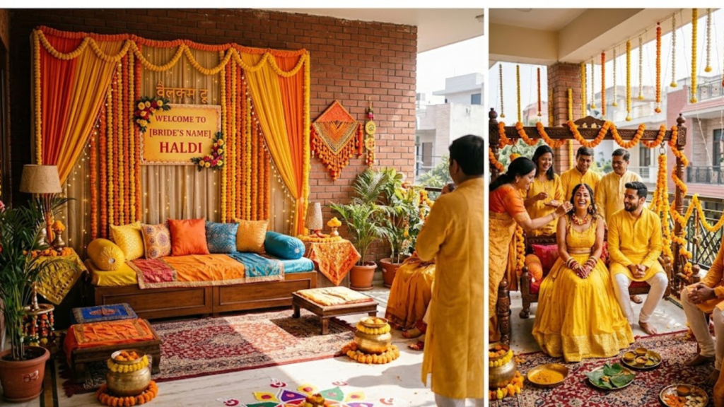 Home Haldi functions have become increasingly popular because they feel more personal and intimate. With the right décor elements like marigold flowers, bright fabrics, and traditional props, even a small living room, terrace, or courtyard can become the perfect Haldi venue. In Delhi, many families prefer creative and budget-friendly decorations that capture the traditional essence of the ceremony while making the setting look festive and photogenic.