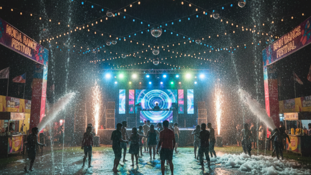 The success of any rain dance event begins with high-quality equipment. Professional planners in Noida use powerful shower systems, waterproof sound setups, anti-skid flooring, and proper water circulation units to ensure smooth operation.