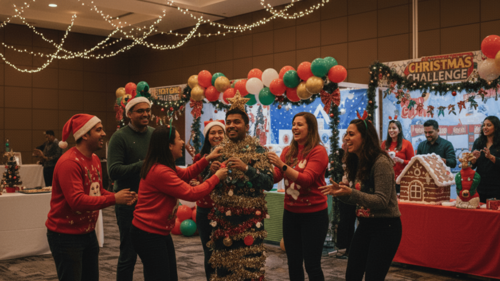 - Holiday Trivia Challenge: Test everyone’s knowledge about Christmas traditions, company milestones, and fun facts.