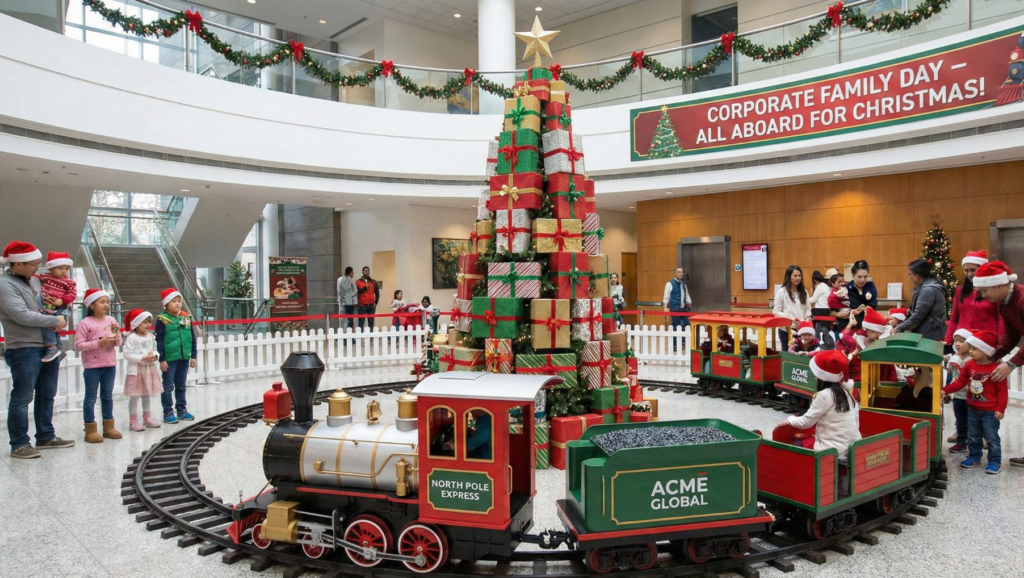 Planning a corporate family event becomes instantly more festive when you bring in Toy Train Themes for Christmas as the centerpiece attraction. In the first paragraph itself, it’s clear that using this theme adds charm, excitement, and nostalgia to any Christmas celebration. The bright colors, joyful rides, and themed décor create a memorable environment that both kids and adults absolutely love—making it a perfect fit for Corporate Family Day.